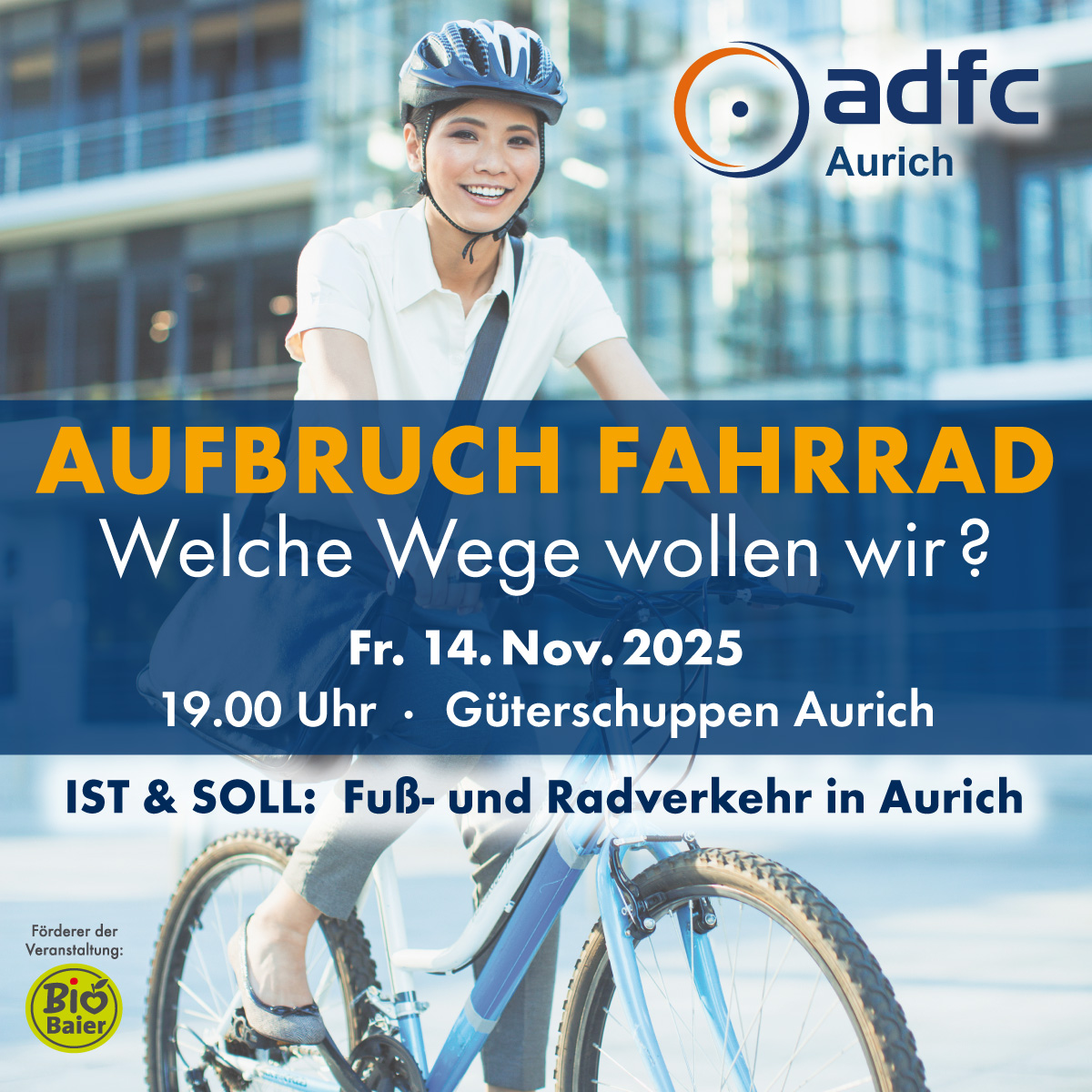 Zum dritten Mal lädt der ADFC Aurich zu einer Veranstaltung im Güterschuppen ein. Nach kurzen Beiträgen verschiedener Referent*innen von Verbänden und der Stadtverwaltung wird es interaktive Debatten innerhalb des Publikums geben.